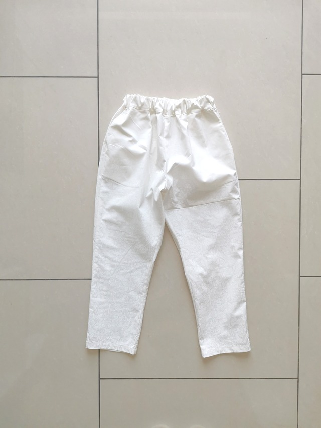 ウィリアム・モリス デザイン BrotherRabbitの綿シーチング生地を使ったパンツ はき心地やわらかなコットン素材で仕立てました。 優しくやわらかな色のブラザーラビット。 淡いお色のコーディネートが好きな方にはもちろん、 カジュアル派の方も キャップやスニーカーなどの小物を足して いろんな楽しみができます。 サーカスパンツのような丸いシルエットで 全体に卵のようなシルエットになっています 夏はワイドに涼しく 冬は中にタイツをインできて 通年おすすめてす。 ※ポケットあり 【素材】 綿 100% 【サイズ】※誤差ご了承ください 総丈 91cm 股上 41cm 股下 50cm ウエスト平置き 30cm ヒップ平置 65cm (総ゴム。ゴムを伸ばすと最大95cm程)