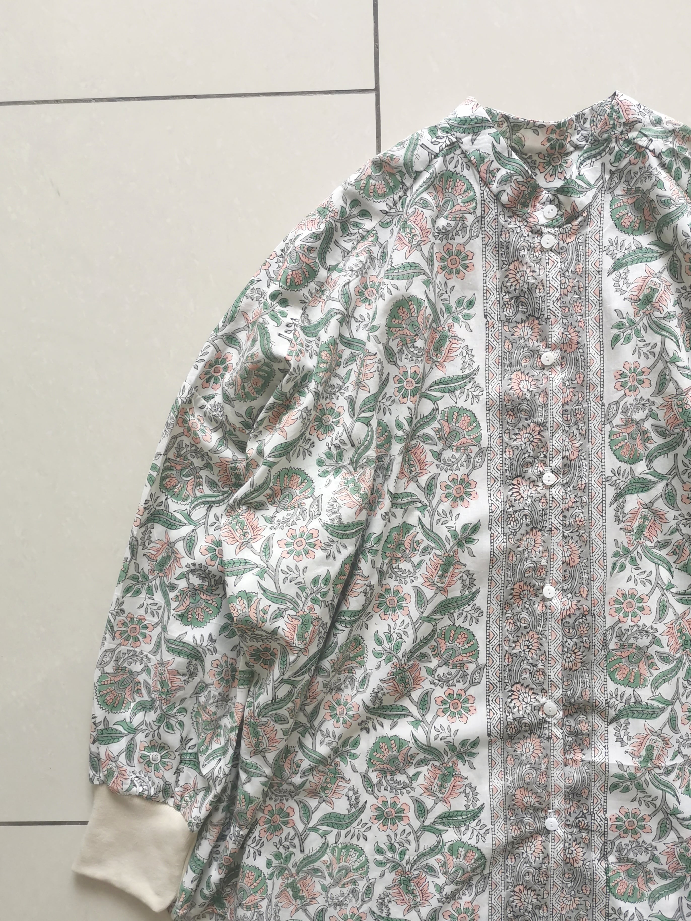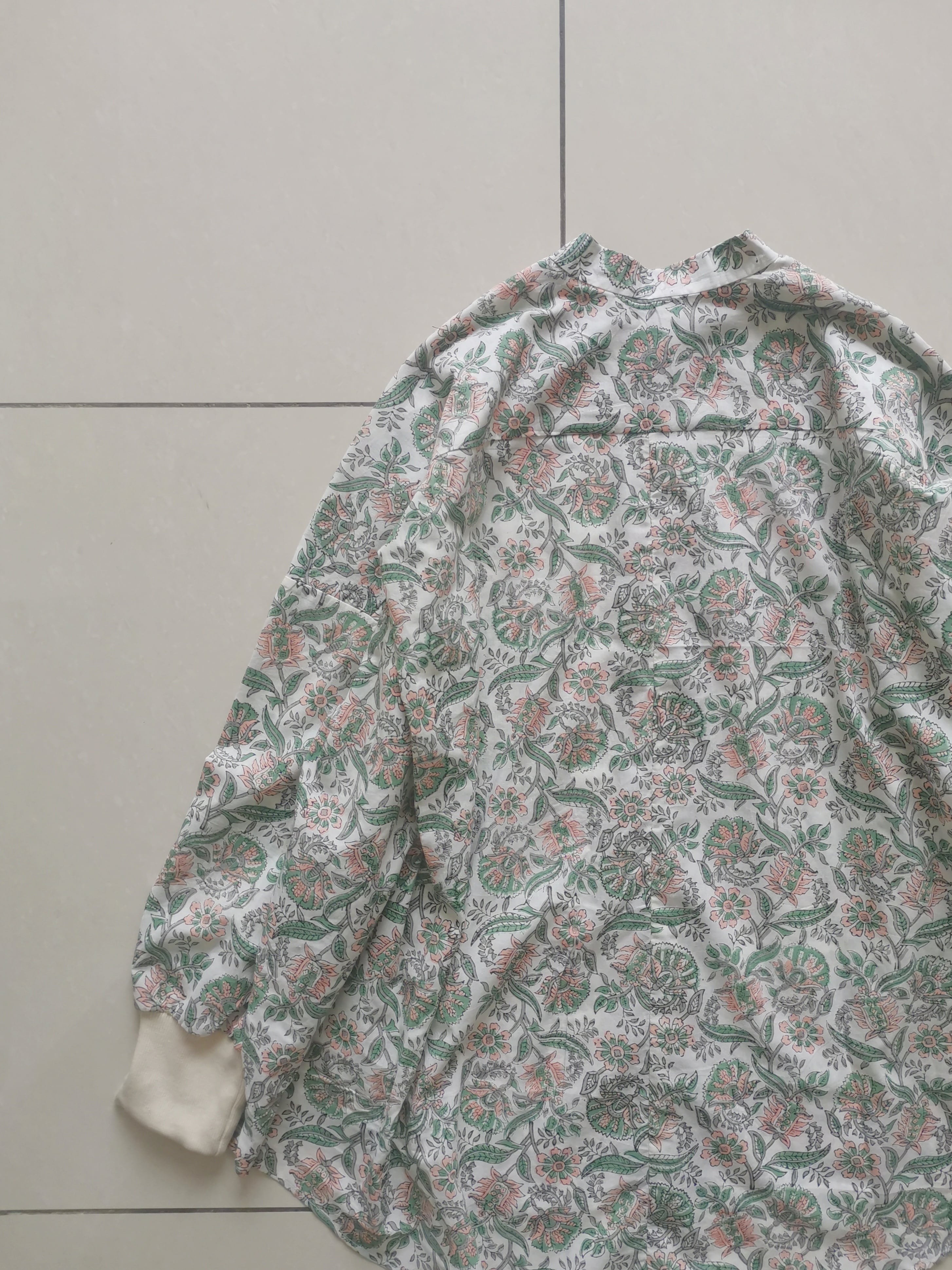 一点もの インド綿のビッグシルエットシャツ 【green×pink】
