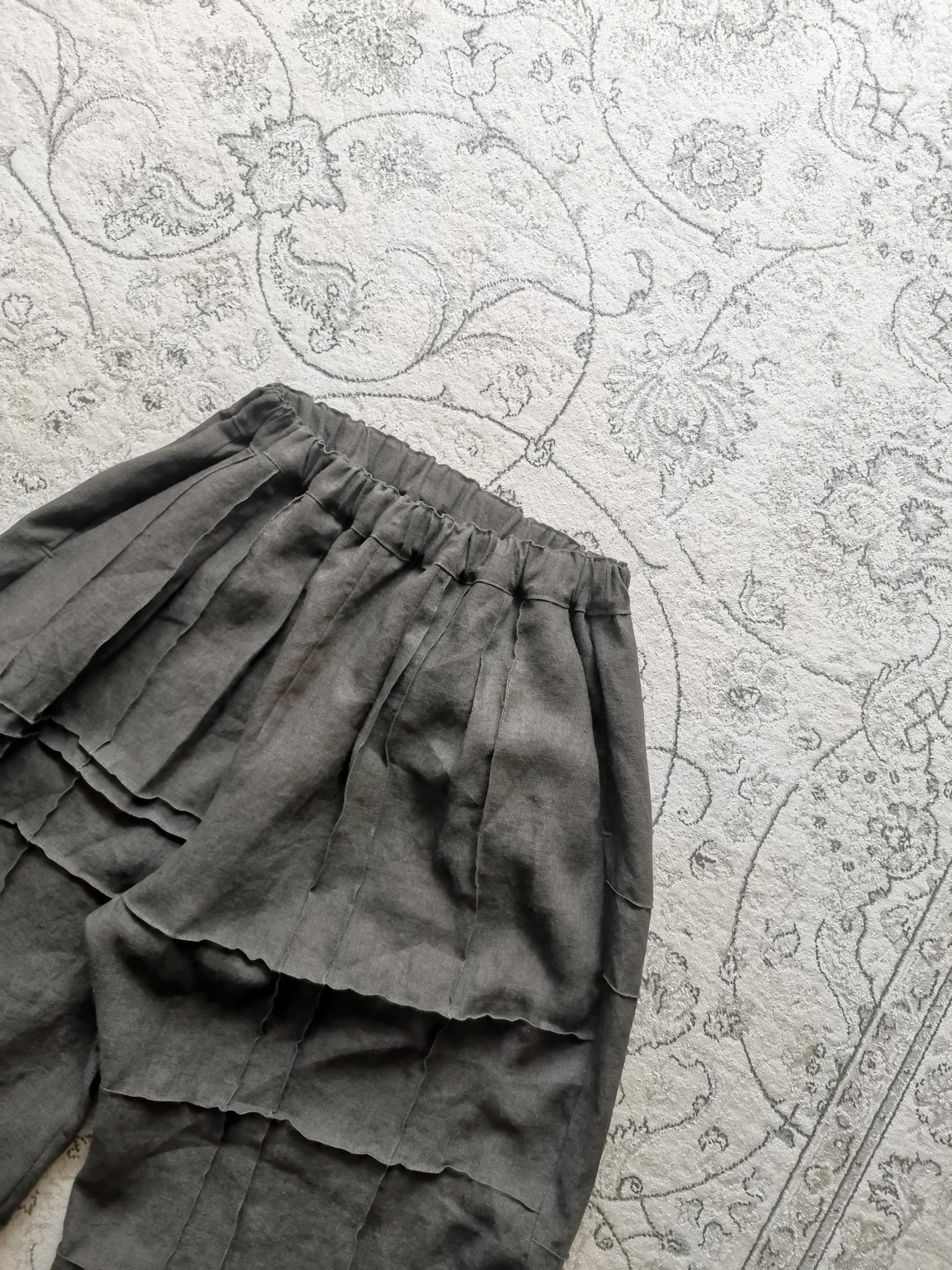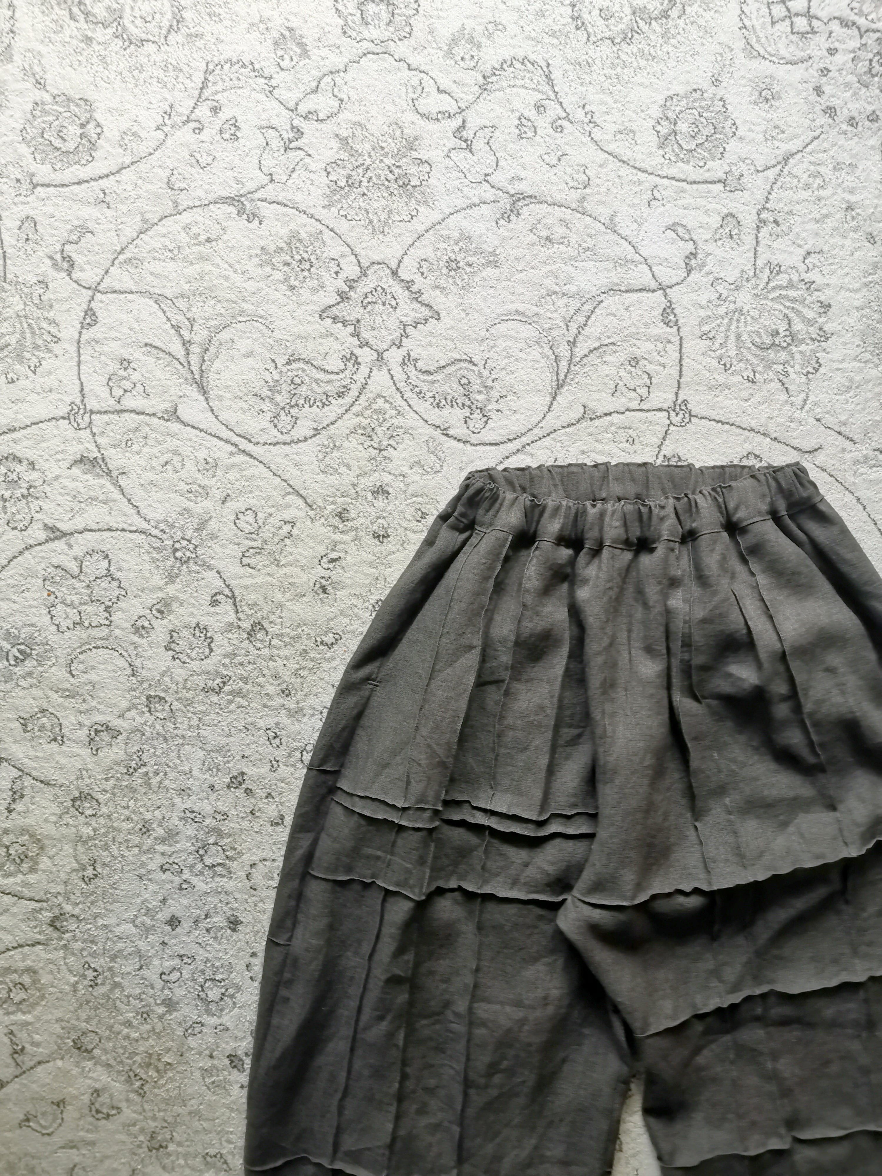 アンティークリネンの格子ステッチ エッグパンツ【Khaki】